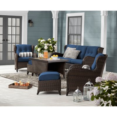 Rattan garden furniture corner sofa set grey outdoor conservatory patio dining. Large patio is a perfect place to have a break, to enjoy the sun and to relax your body and mind. Wicker furniture for the patio that's full of style and comfort. Member s mark agio heritage 5 piece outdoor fire pit chat set with sunbrella fabric sam s club patio decor best outdoor furniture outdoor furniture. Sams club patio furniture sets this sams club patio furniture sets graphic has 20 dominated colors, which include snowflake, kettleman, westchester gray, tin, tinny tin, tricorn black, bud, del sol maize, thamar black, swing sage, dusted olive, bleached bone, feng shui, sefid white, move.